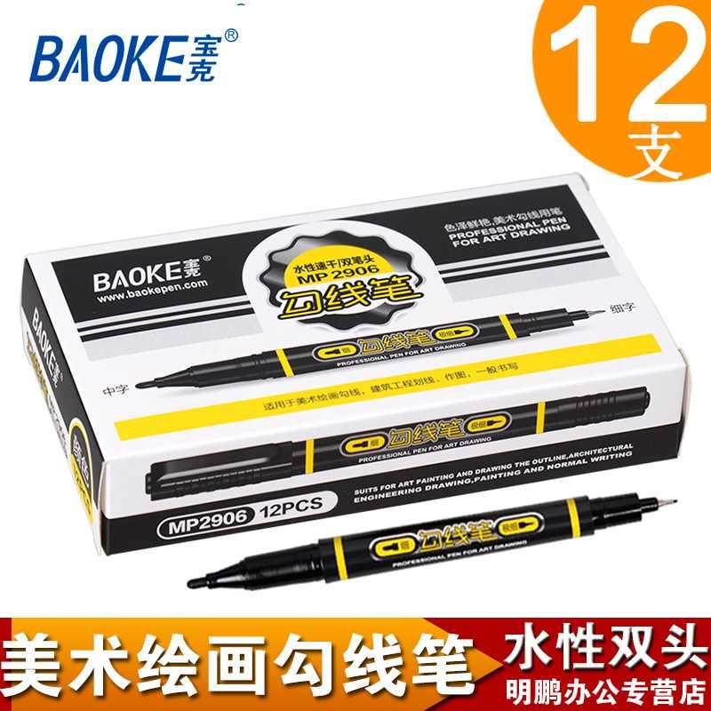 宝克小双头油性记号笔细款美术勾线笔儿童绘画马克笔学生用黑色美