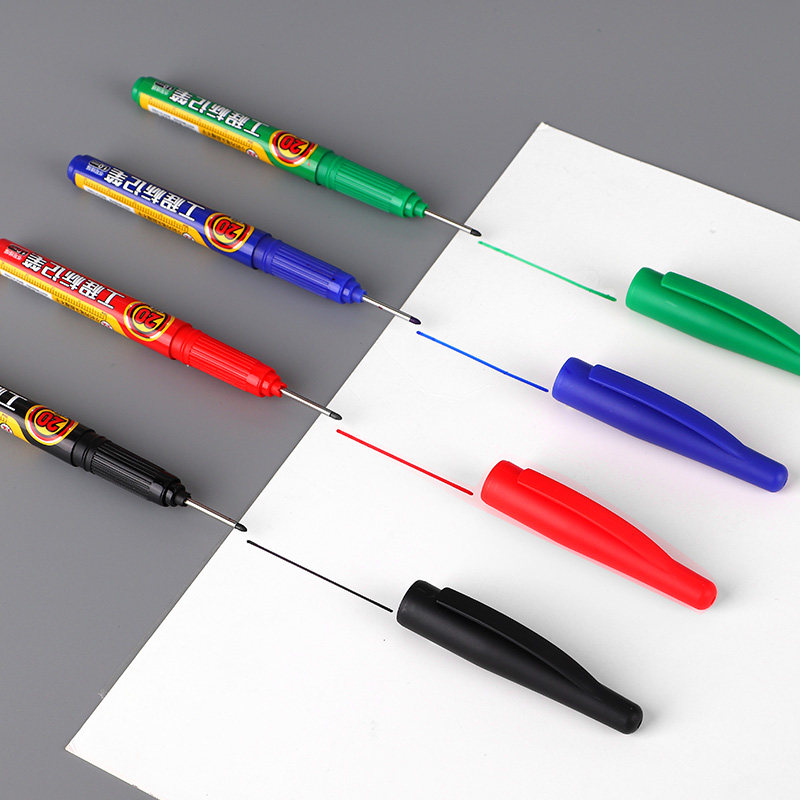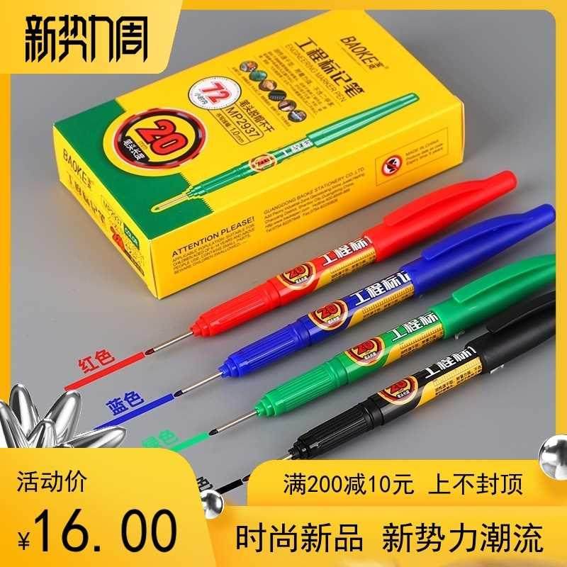 宝克12支装长头记号笔黑色防水不掉色木工工程深孔标记长嘴加长划