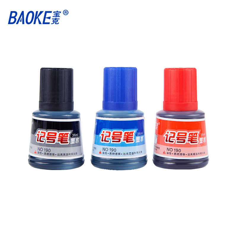 宝克记号笔墨水补充液油性大头笔勾线黑色红色蓝色大容量36ML油性