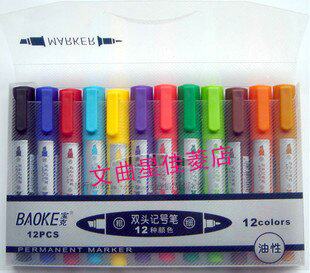 包邮记号笔 油性笔 小双头记号笔12支/盒 宝克220 光盘笔 不退色