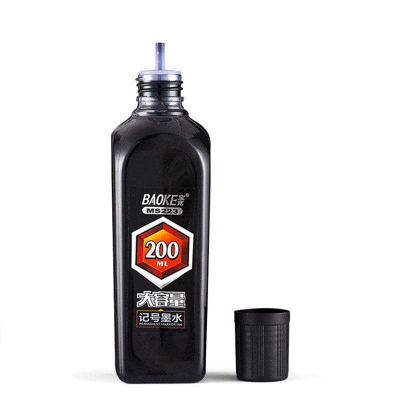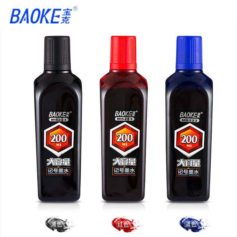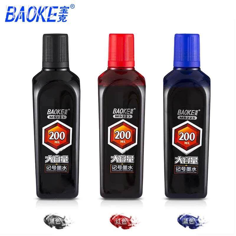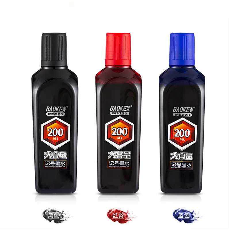 宝克MS223极黑色大容量记号笔墨水200ML彩色补充液红色大容量油性