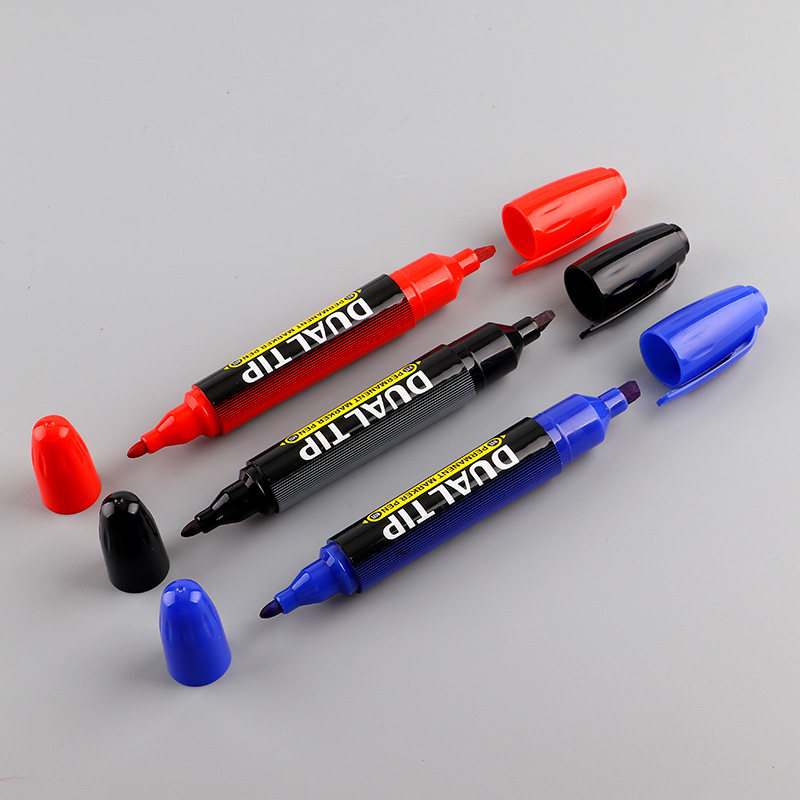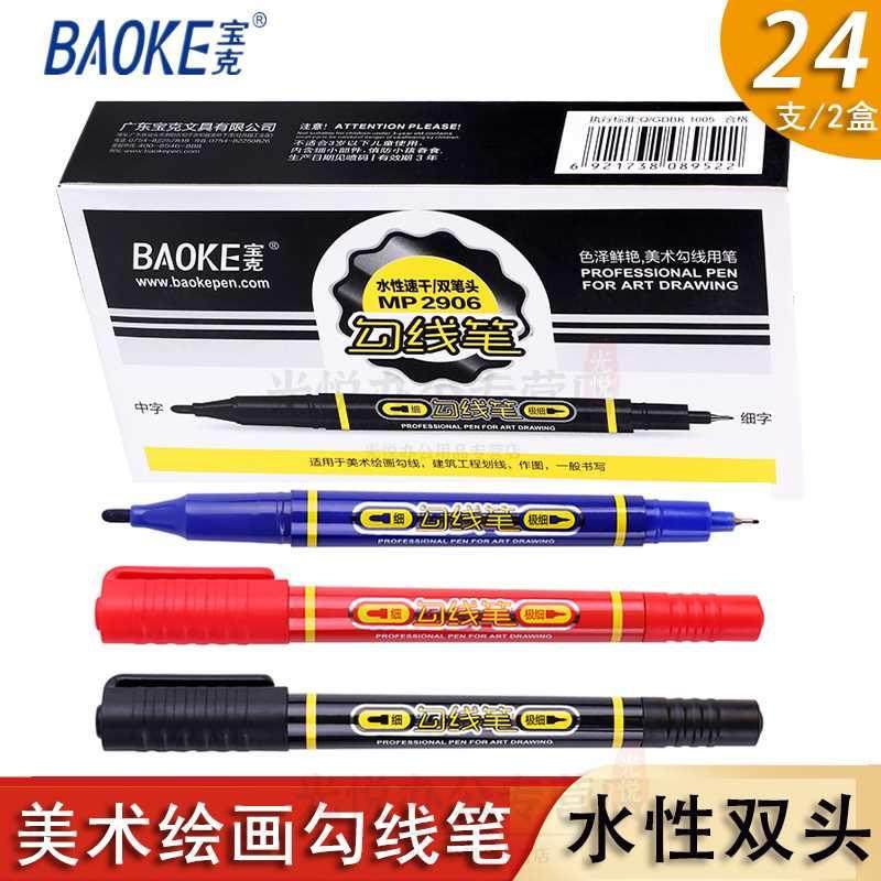 宝克小双头记号笔水性双头勾线笔儿童绘画红 蓝 黑色双笔头美术描