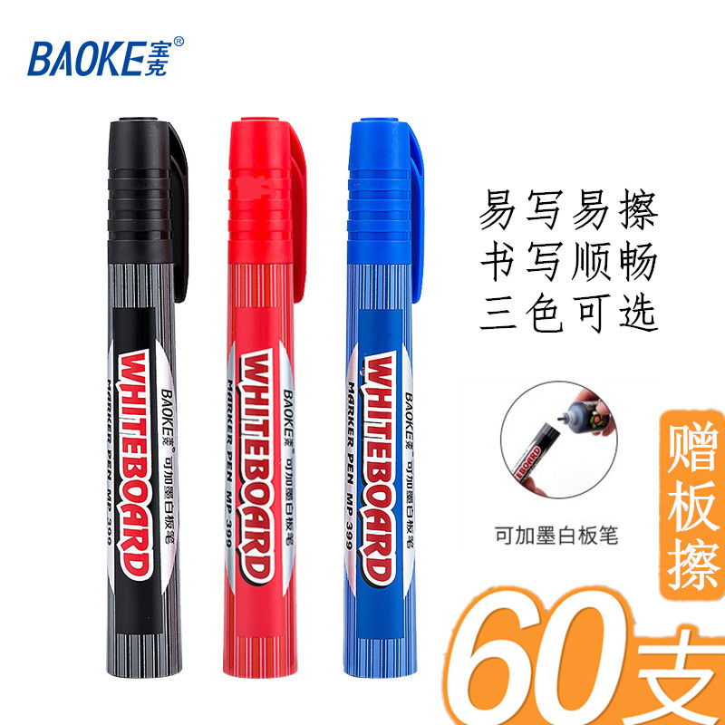 宝克白板笔可加墨水红蓝黑3色可擦学生办公用白板画板记号笔399A