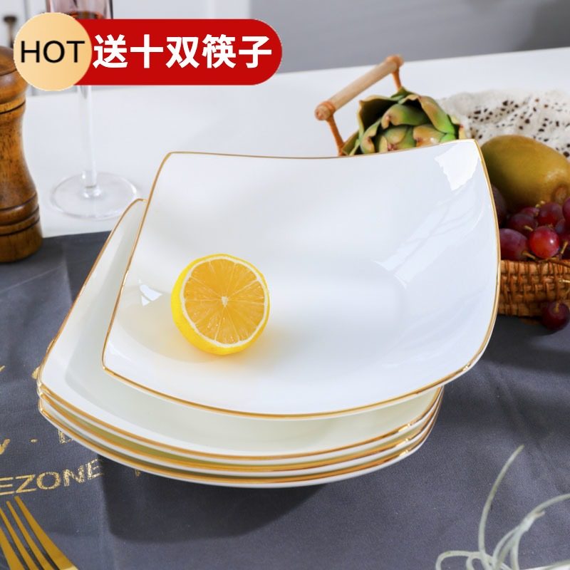 创意骨瓷四角菜盘家用深盘 子欧式金边碟子意大利面网红餐具ins