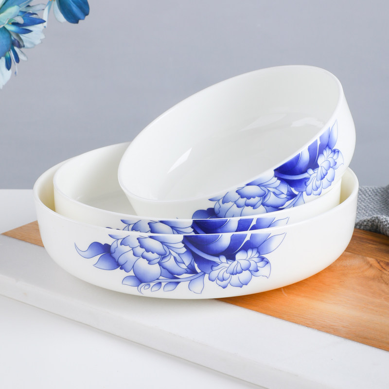 骨瓷盘子菜盘家用窝盘陶瓷圆形深口大盘子欧式餐具酒店碟子汤盘