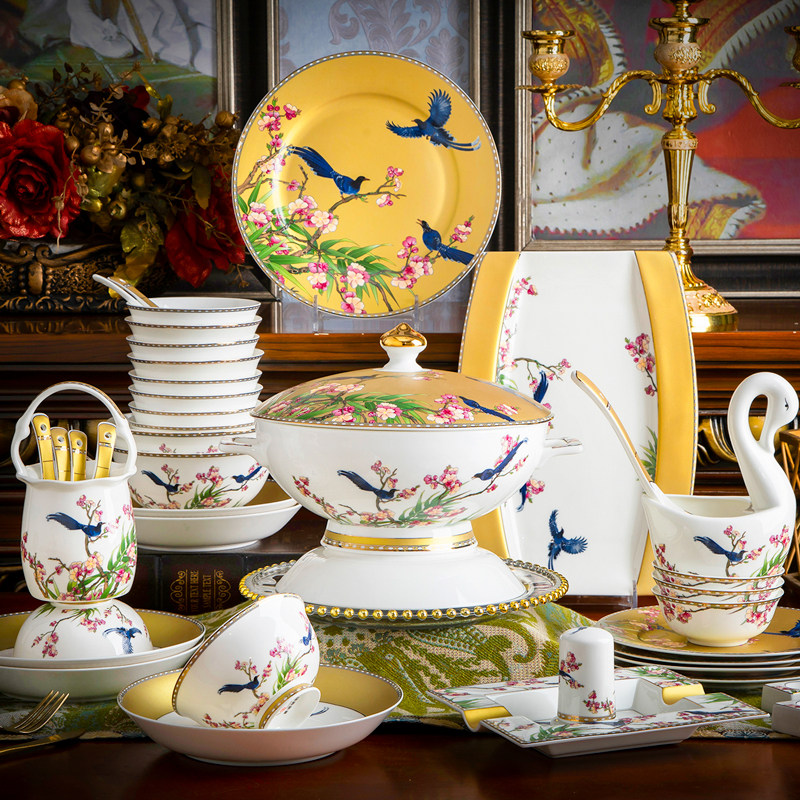 高档骨瓷餐具套装家用中式碗盘碟勺子陶瓷珐琅彩宫廷款结婚送礼