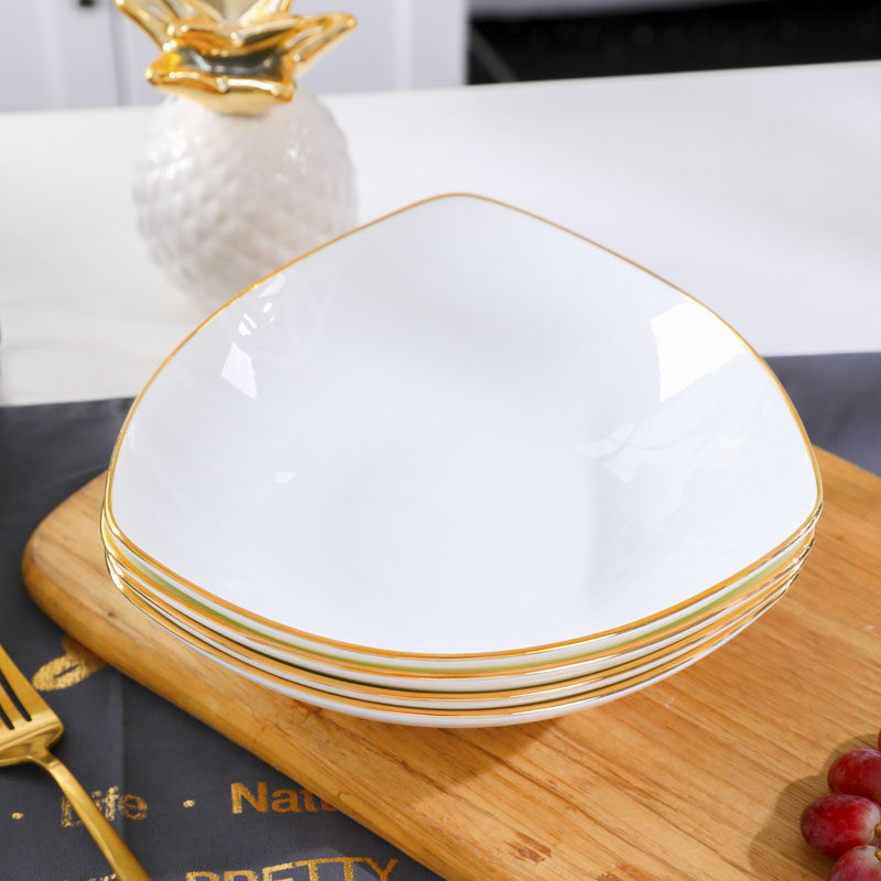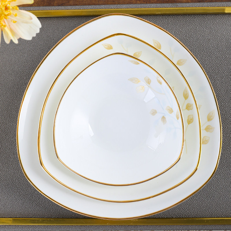 4个骨瓷金边三角盘子家用菜盘异形水果沙拉盘不规则酒店陶瓷餐具