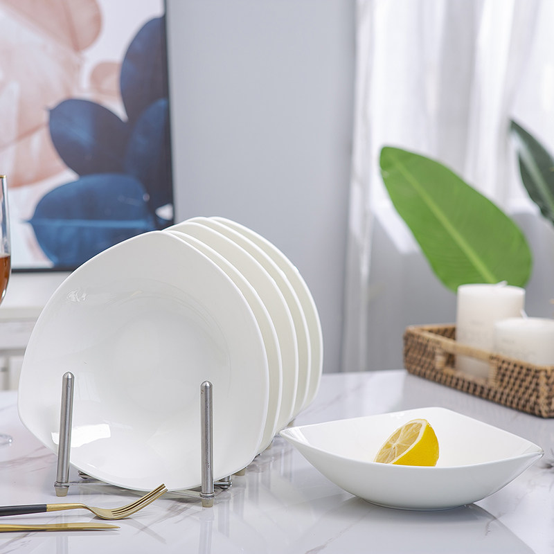 6只骨瓷异形盘子套装创意家用碟子炒菜深盘白色汤盘欧式陶瓷餐具