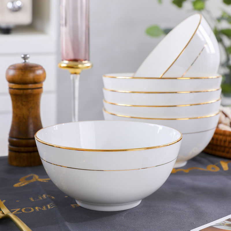 6个家用饭碗轻奢骨瓷面碗陶瓷金边粥碗网红可爱早餐碗景德镇餐具