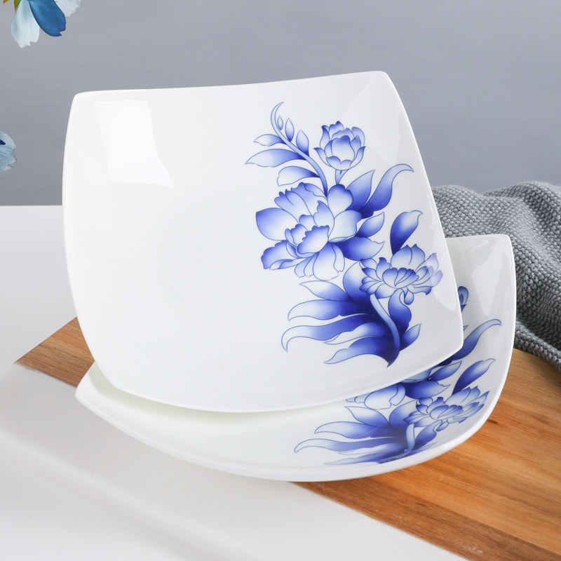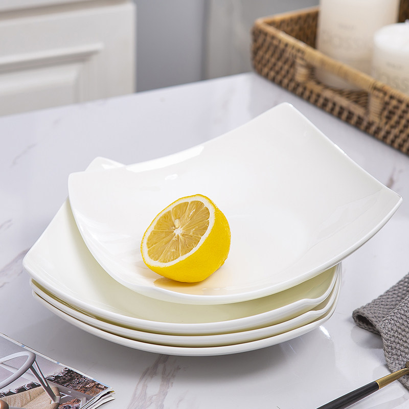 家用骨瓷菜盘方形碟子釉中彩翘角深盘创意陶瓷沙拉盘网红酒店餐具