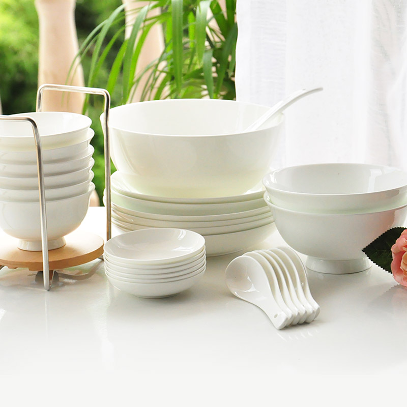 骨瓷餐具套装中式简约碗盘碟子家用陶瓷整套纯白色28头餐具景德镇