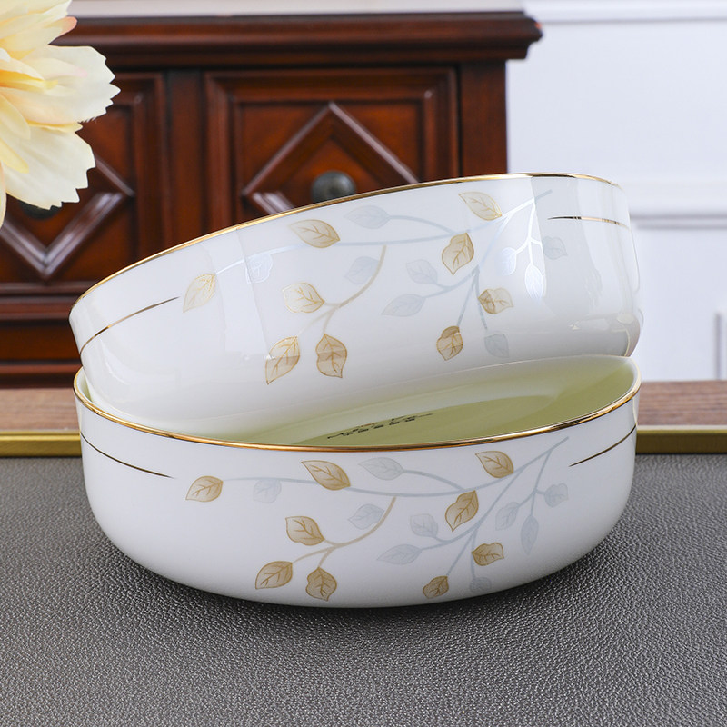 4个骨瓷金边家用深口盘子陶瓷菜碗沙拉碗早餐盘加深窝盘组合餐具