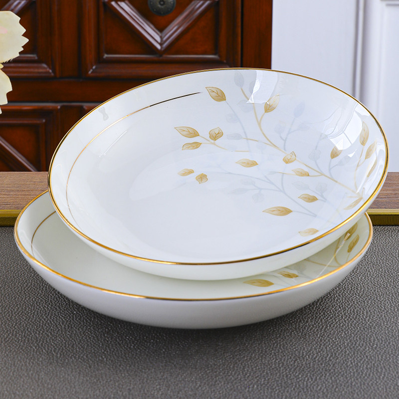 骨瓷金边炒菜盘子加深菜盘套装家用深口碟子圆形陶瓷酒店餐具餐盘