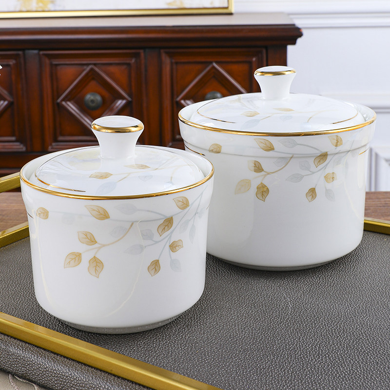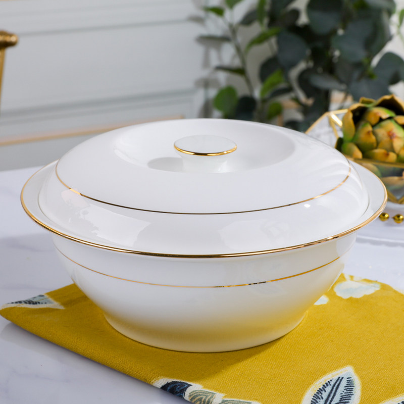 景德镇家用骨瓷汤煲品锅陶瓷金边大号汤锅欧式大汤碗带盖餐具