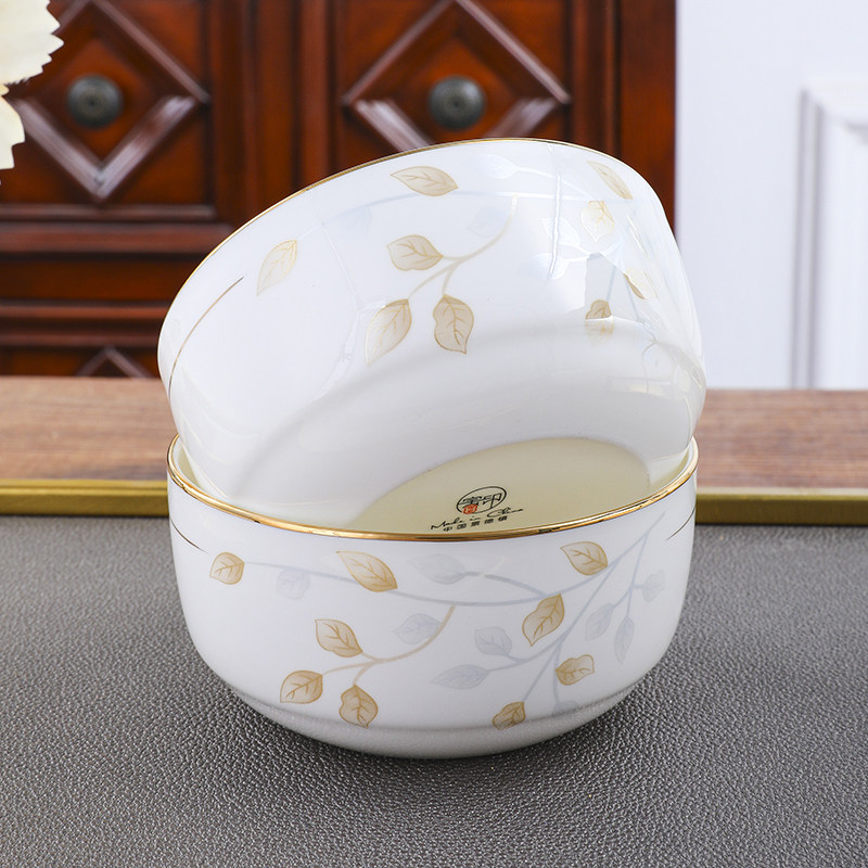 宝印骨瓷斗笠碗家用面碗吃饭碗大汤碗陶瓷餐具金边粥碗盘酒店套装