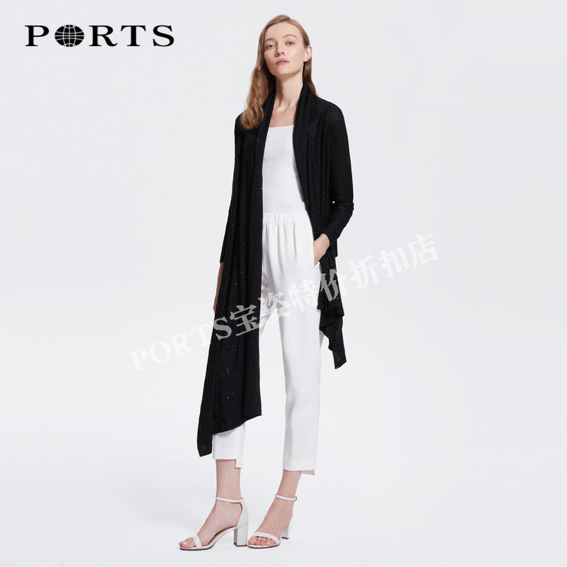 PORTS宝姿女装春季时尚个性围巾领羊毛开衫中长款LM8K303MKF009