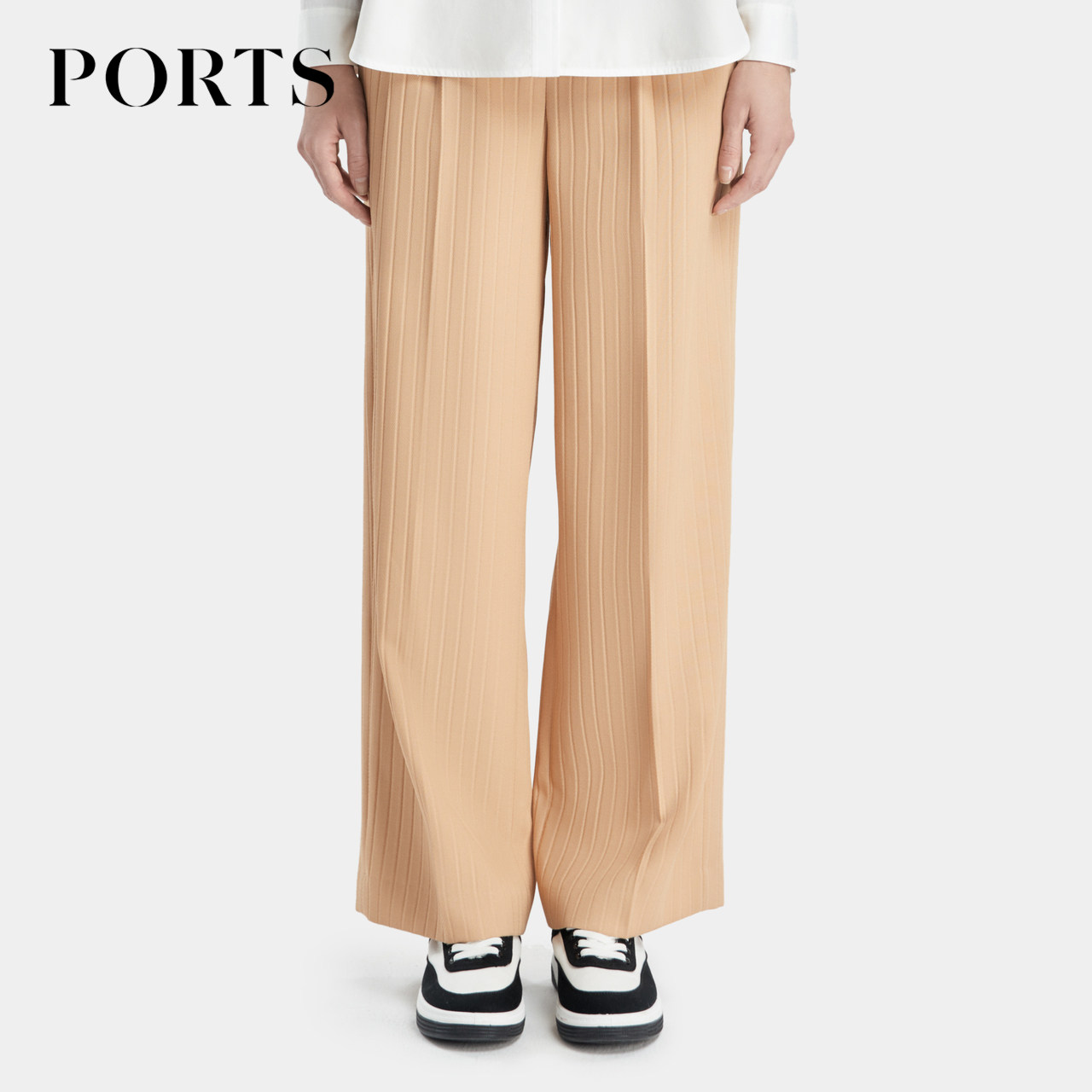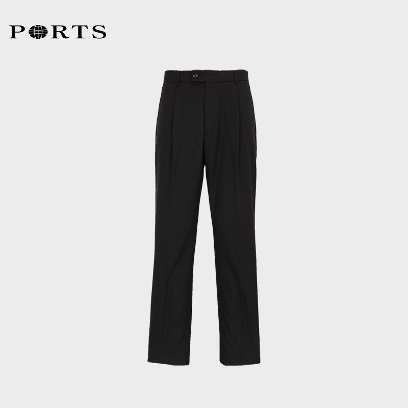 PORTS宝姿女装裤子2023春季新款褶裥装饰百搭直筒裤LP8P018RWF051