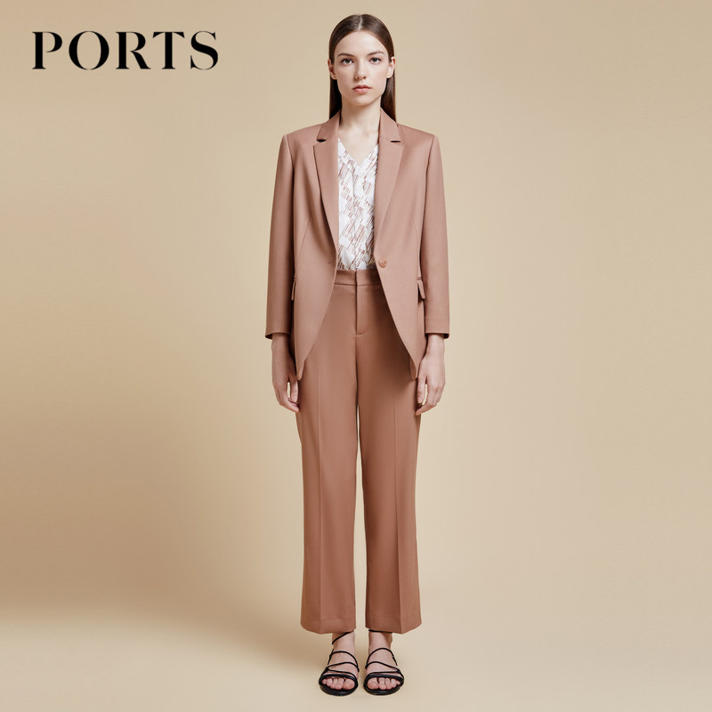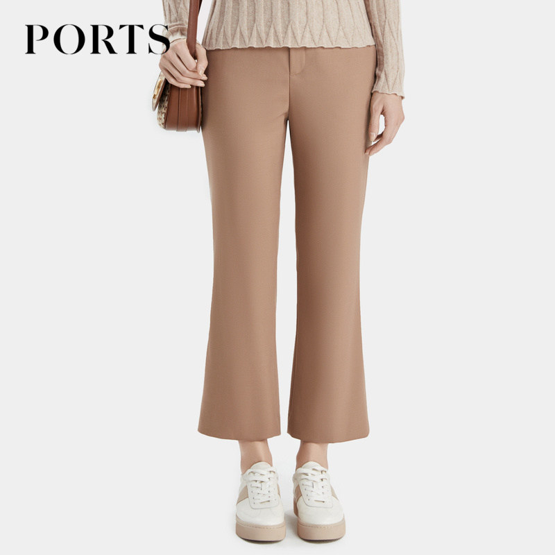 PORTS宝姿女装裤子通勤春季栗木褐高开叉羊毛休闲裤LD8P054NWF047