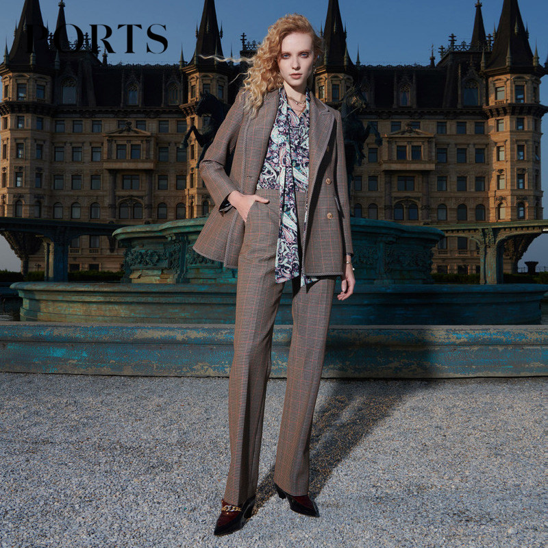 PORTS宝姿女装裤子秋季混色复古格纹直筒西裤女LD9P087QFF117