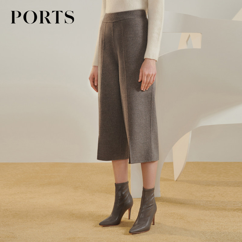PORTS宝姿女装毛丝绒双面顺毛呢阔腿七分裤休闲裤LL9P064LWF065