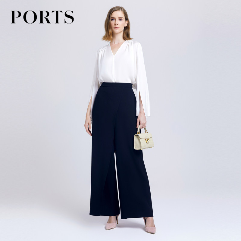 PORTS宝姿女装春季时尚气质不对称叠片休闲阔腿裤LD8P020KWB008