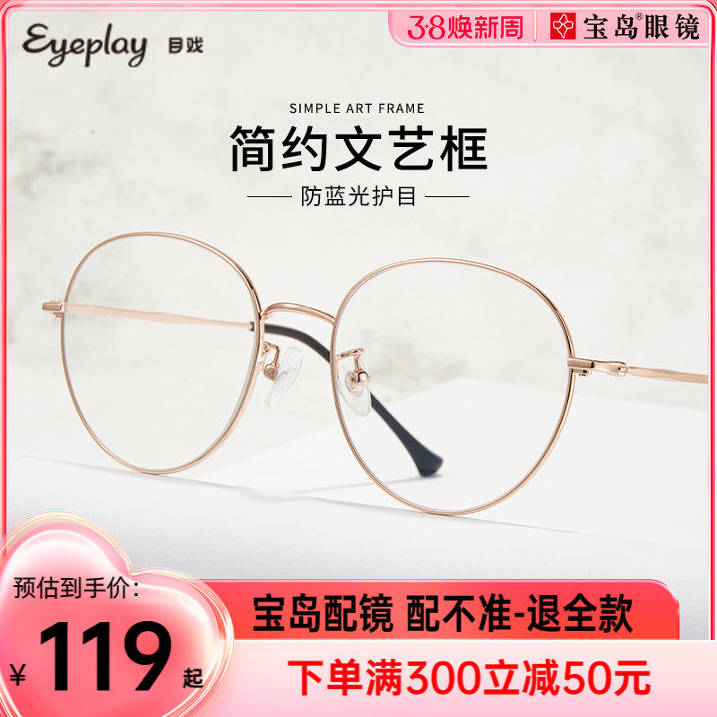 目戏防蓝光眼镜钛合金镜腿眼镜护眼文艺圆框可配近视眼镜女1023