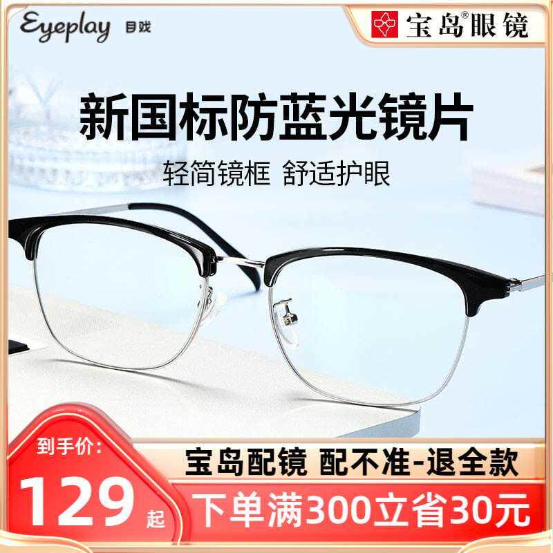 目戏无度数眼镜男士商务半框护目学生看手机电脑平光防蓝光眼镜