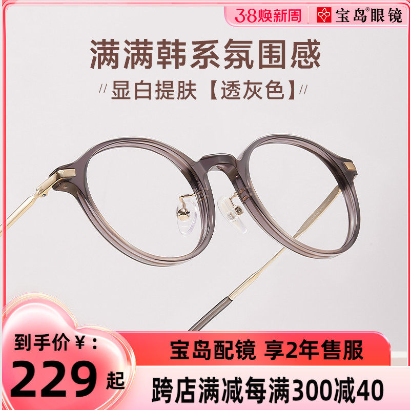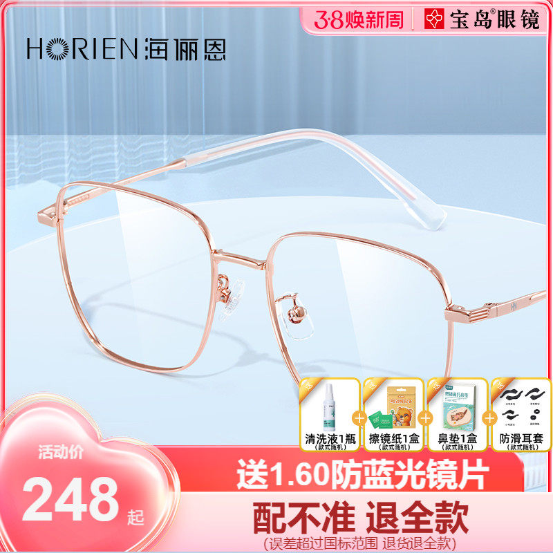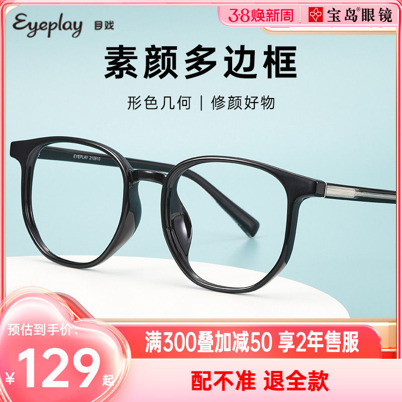 海俪恩眼镜框透明近视眼镜架女款圆脸可配镜片男潮宝岛官方75010