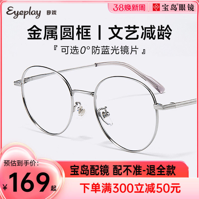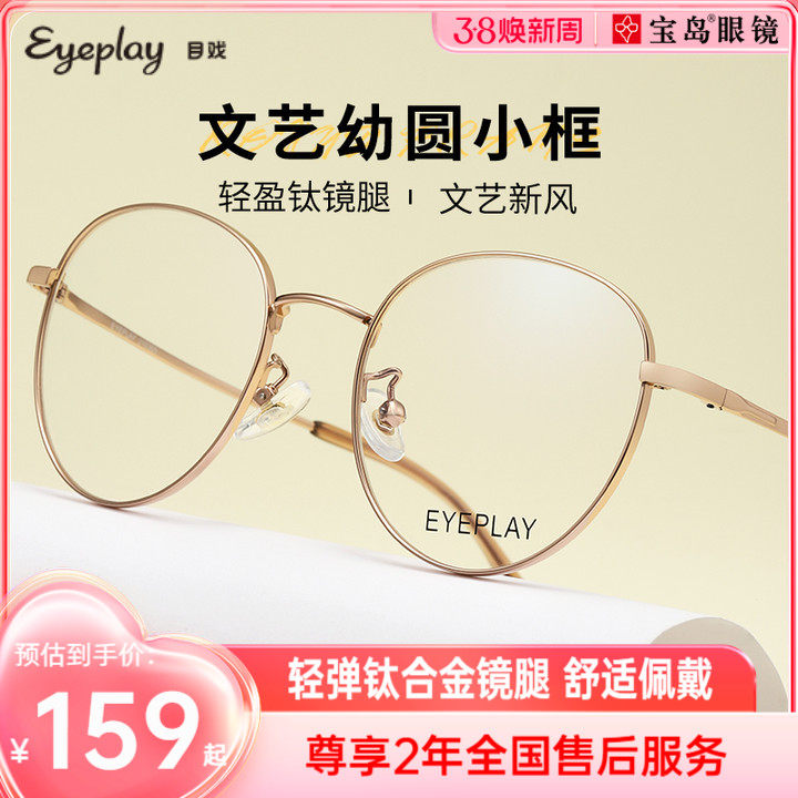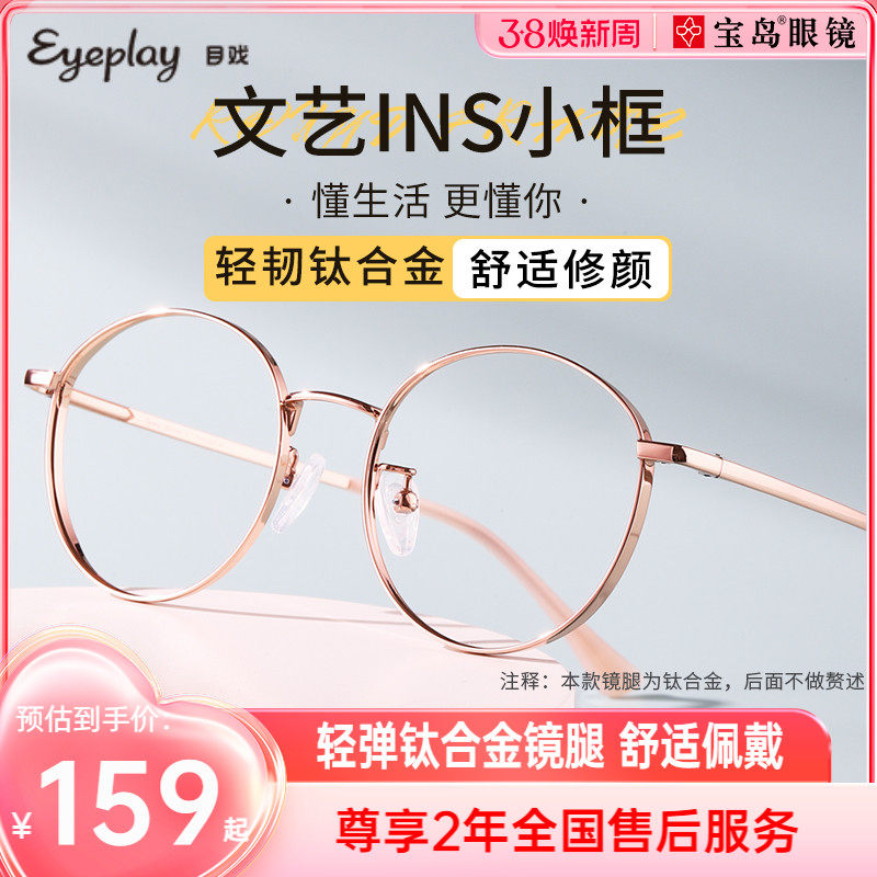 目戏轻盈钛合金镜腿近视眼镜女小框文艺圆框可配1.67轻薄镜片1059