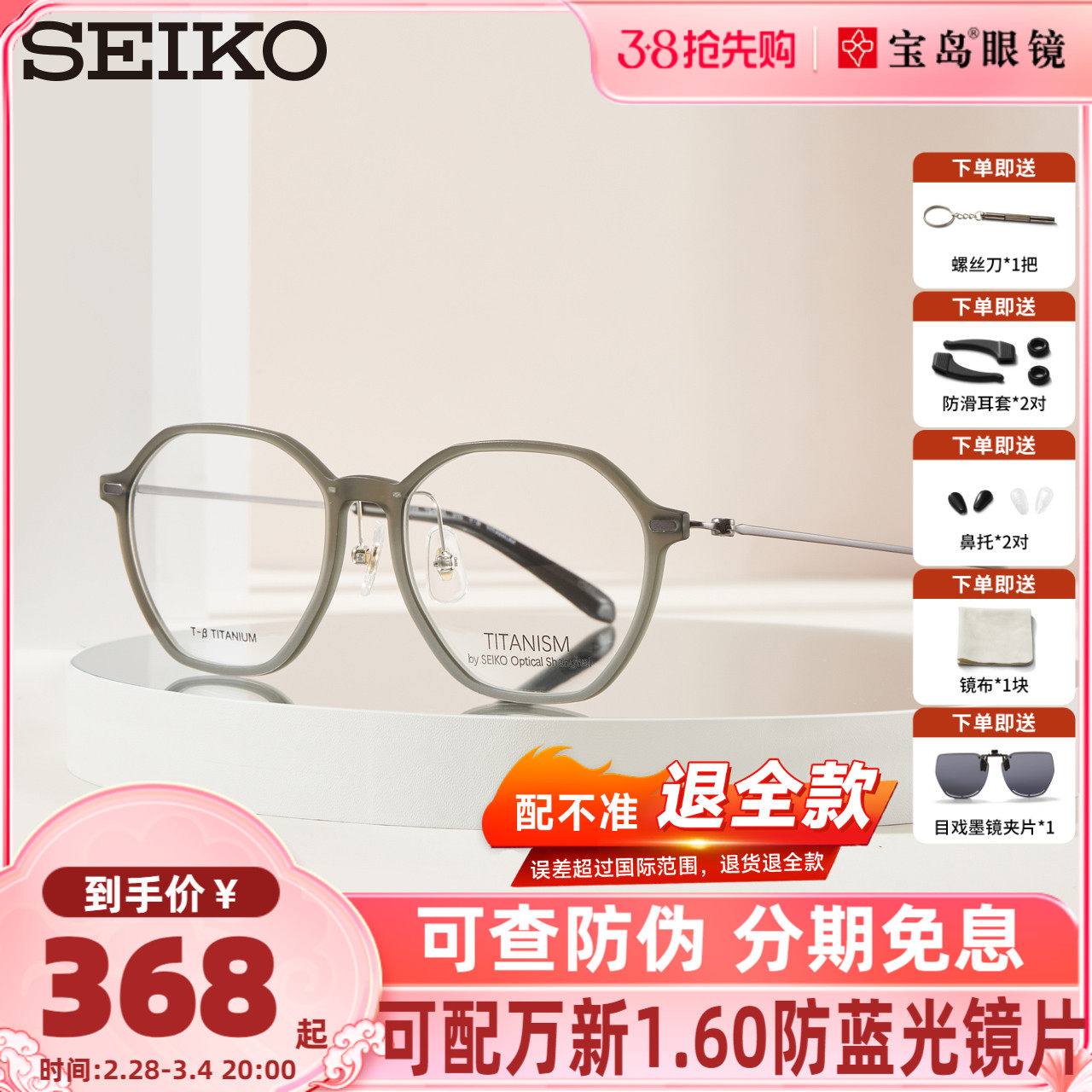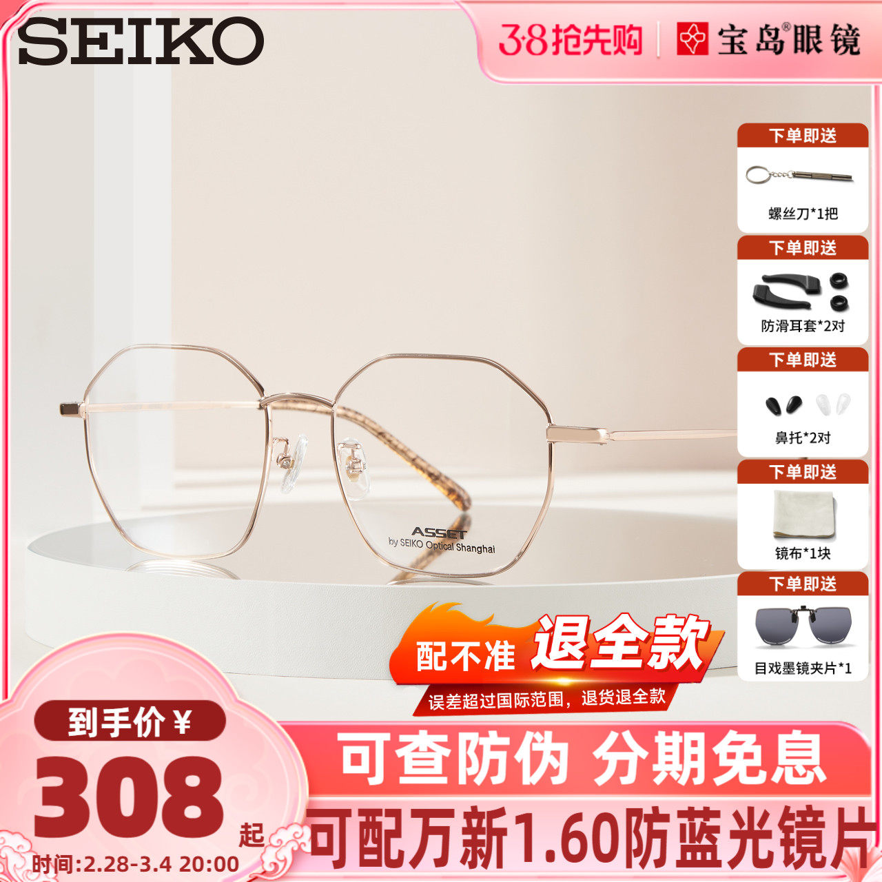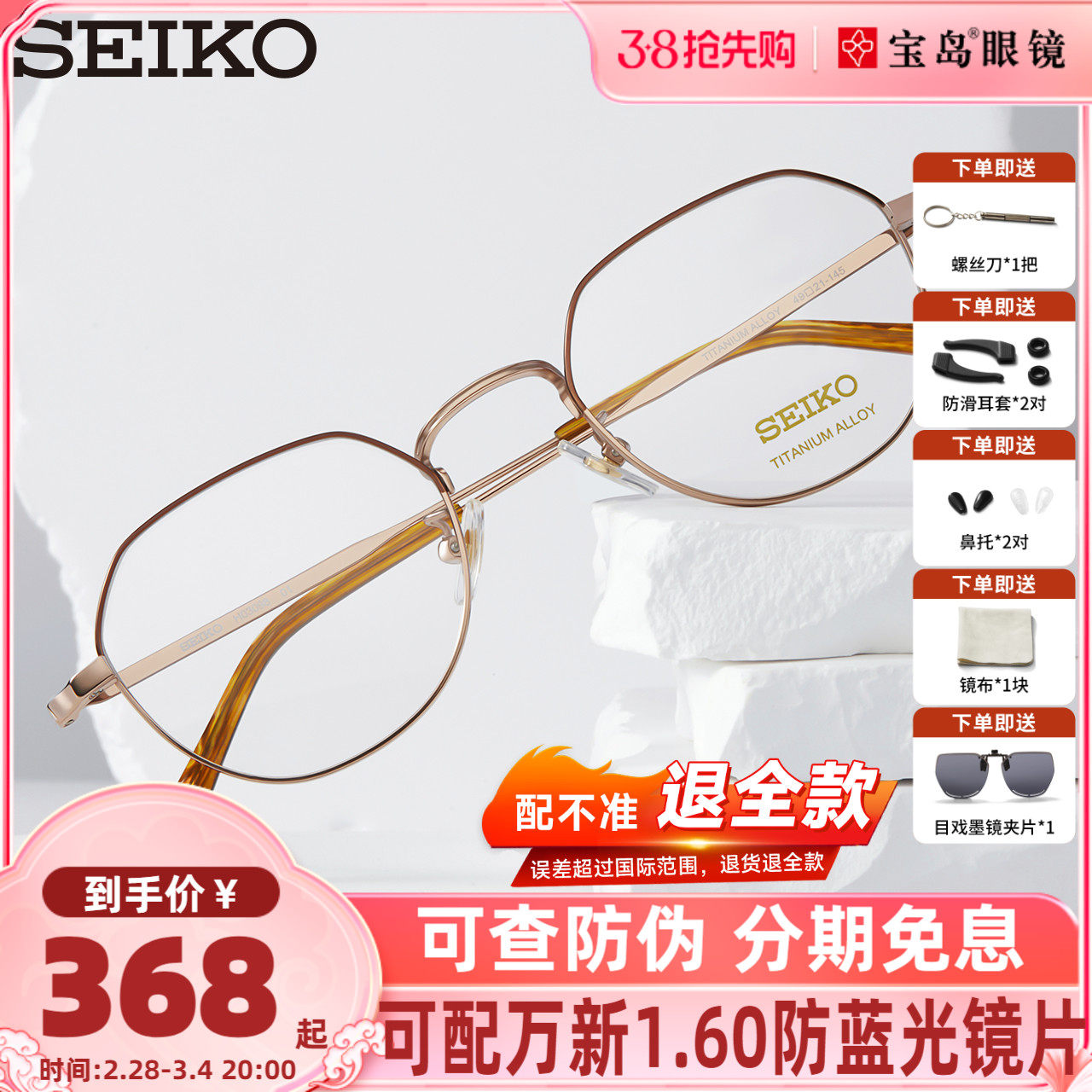 SEIKO精工眼镜架男女多边形复古钛合金眼镜框可配近视镜片3098