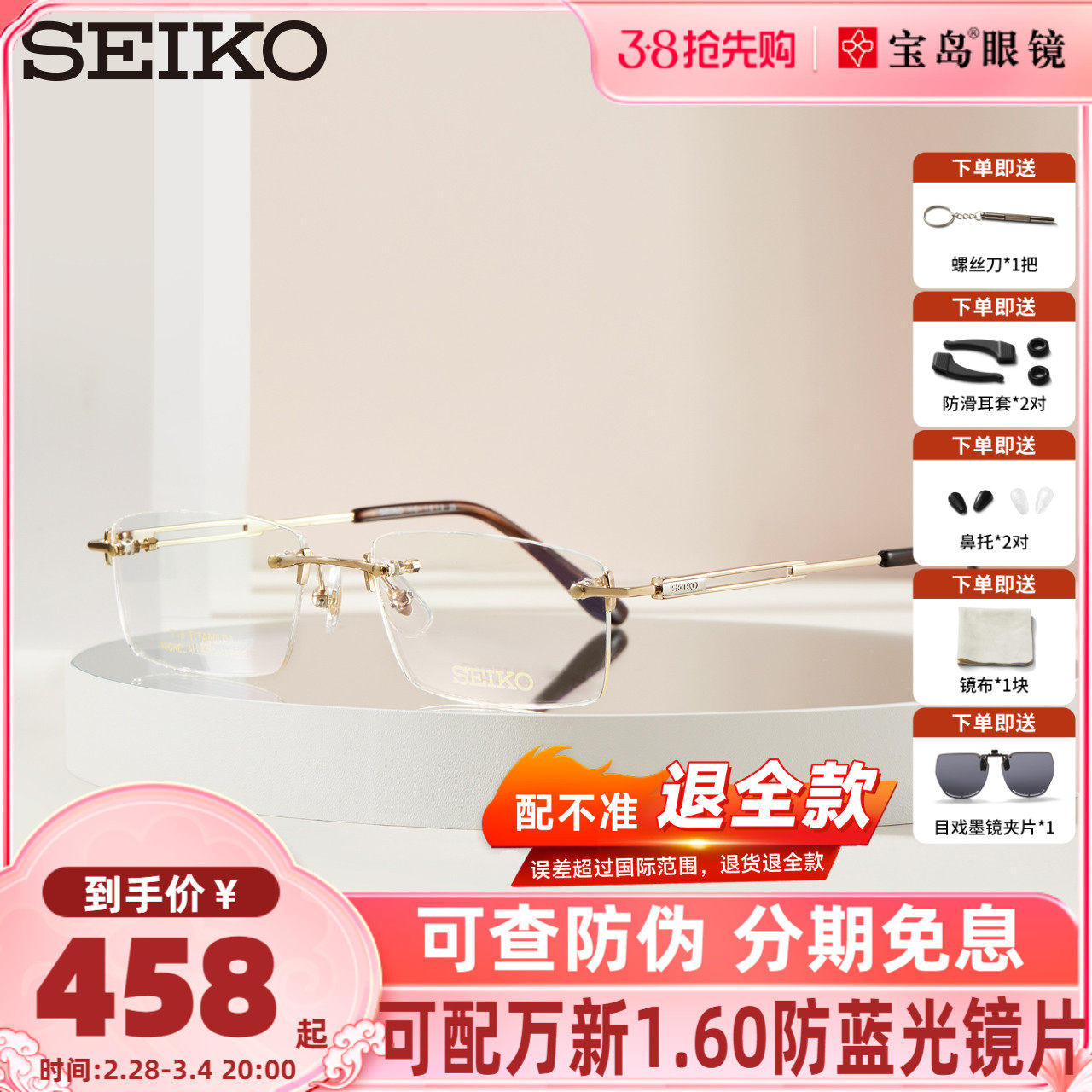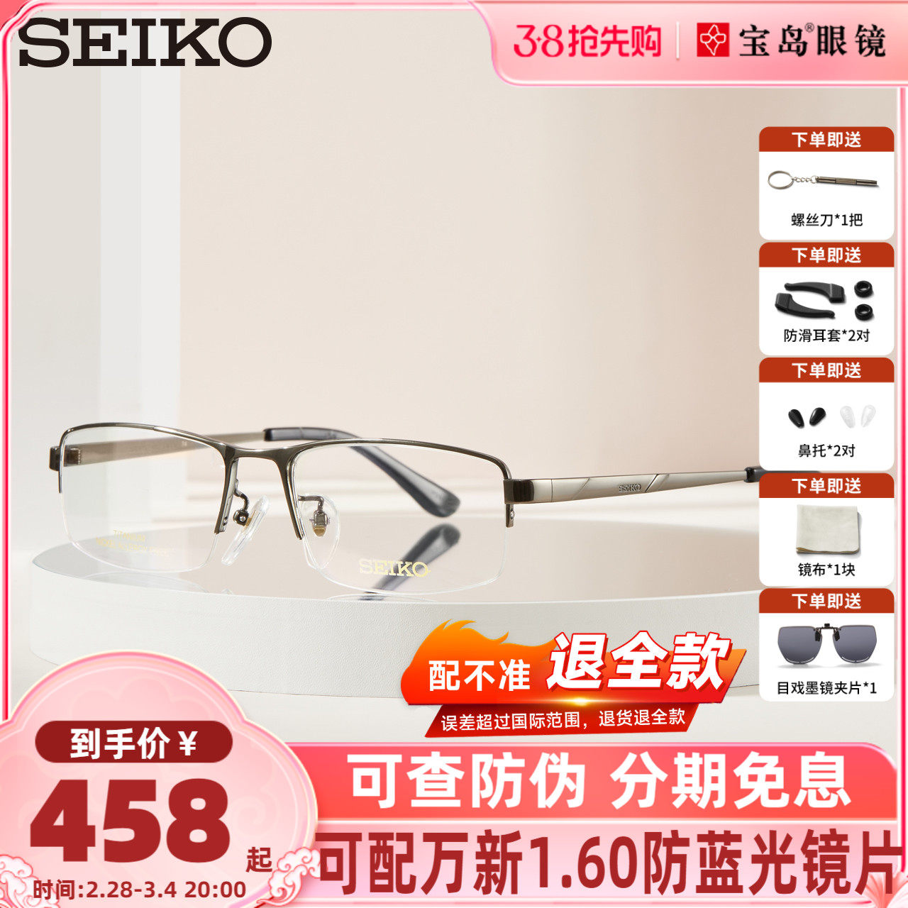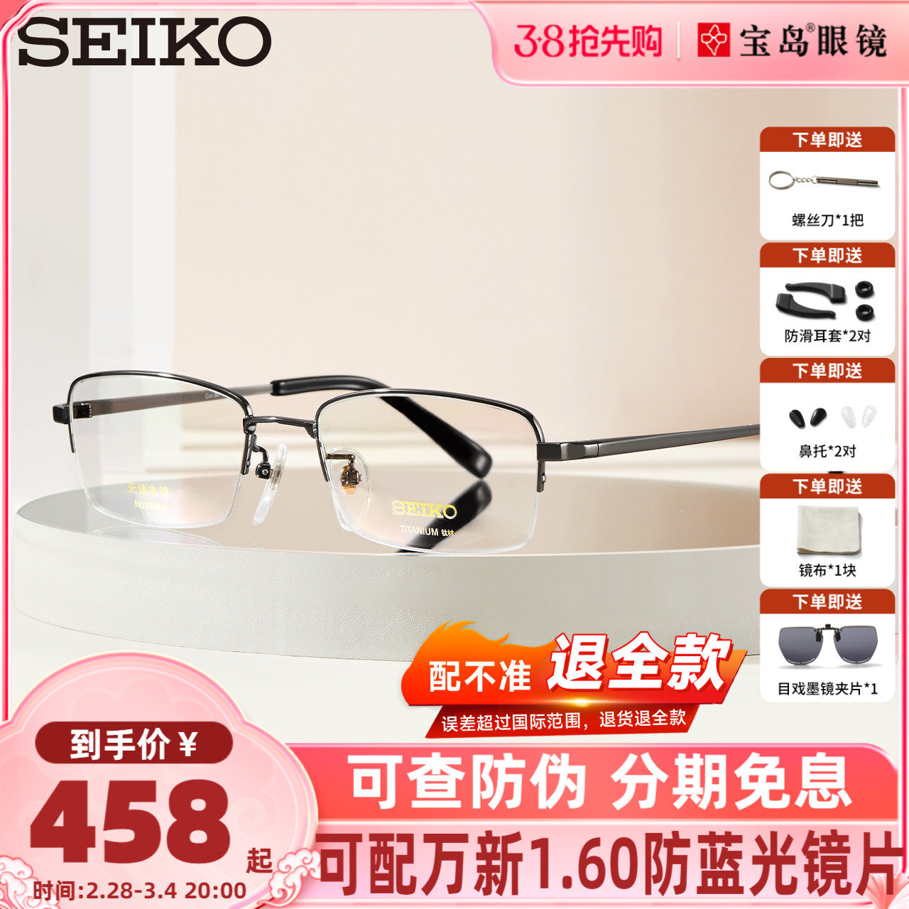 SEIKO精工眼镜框框男钛合金半框镜架可配近视度数镜片宝岛HT01077