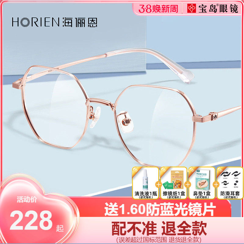 海俪恩多边形眼镜框纯色眼镜架钛合金镜腿轻可配镜片宝岛31105