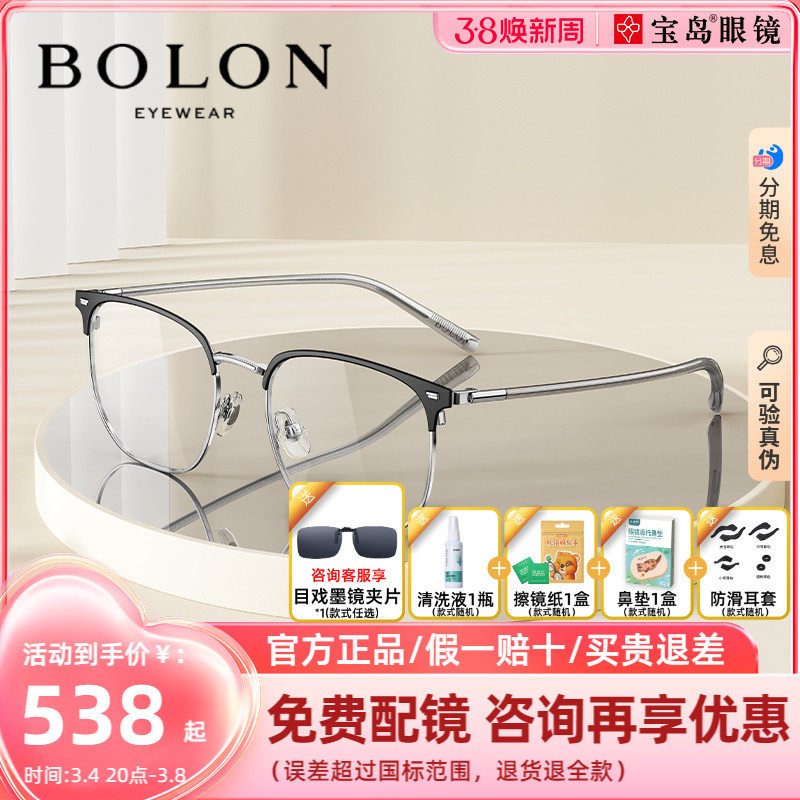 暴龙近视眼镜女光学镜框钛合金镜腿光学眼镜架男可配镜片BH6000