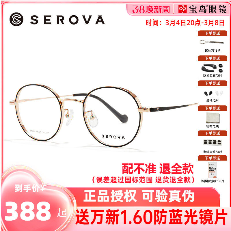 施洛华眼镜架钛合金圆框男女小脸宽边厚边可配高度近视镜片SP326
