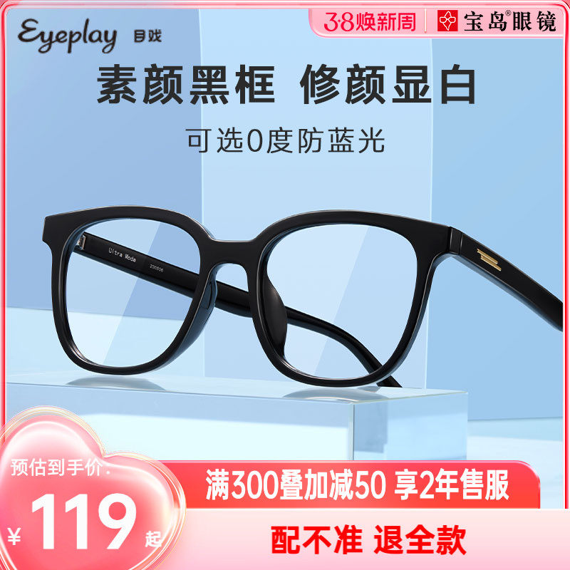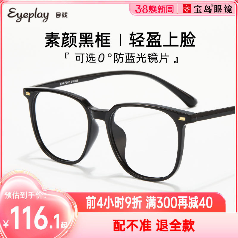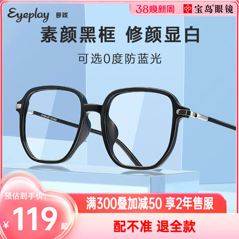 目戏黑框素颜近视眼镜可配度数防蓝光镜片眼镜框镜架大框显脸小女