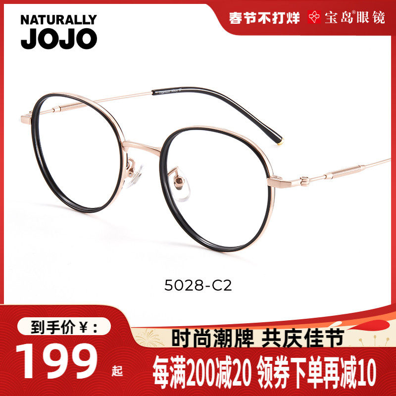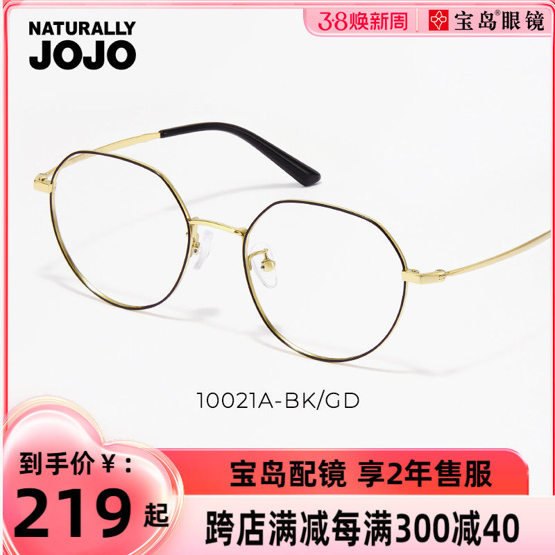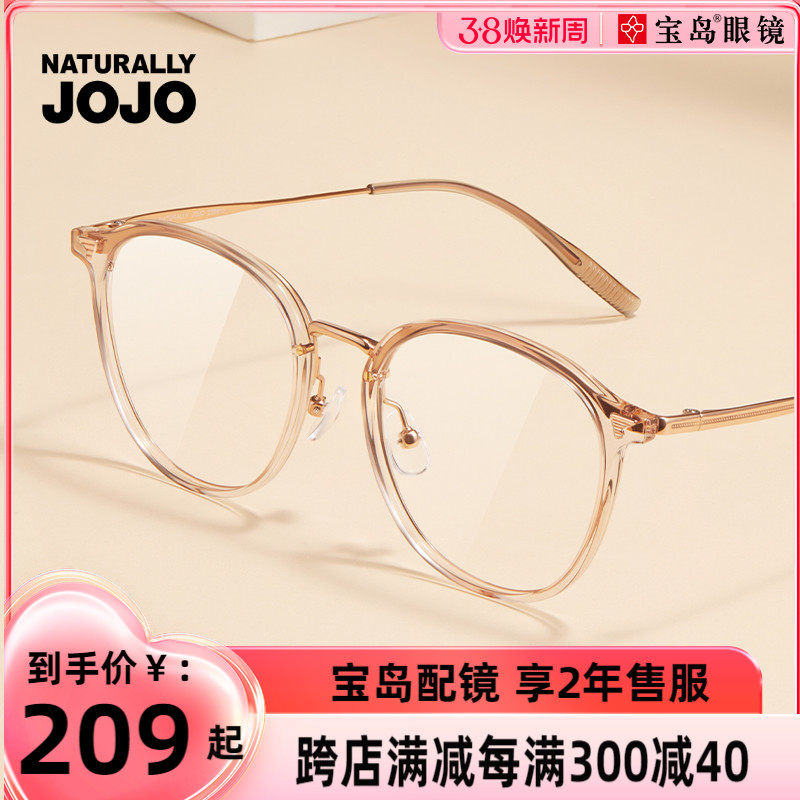 JOJO圆框时尚近视眼镜女钛合金镜腿可配防蓝光度数镜片10021A