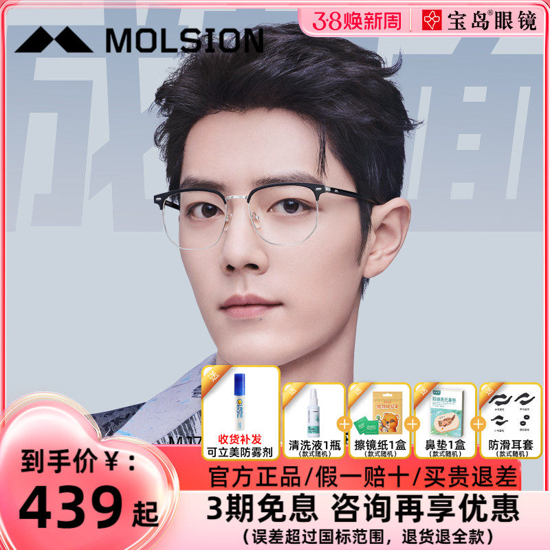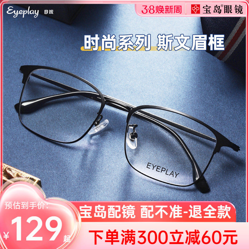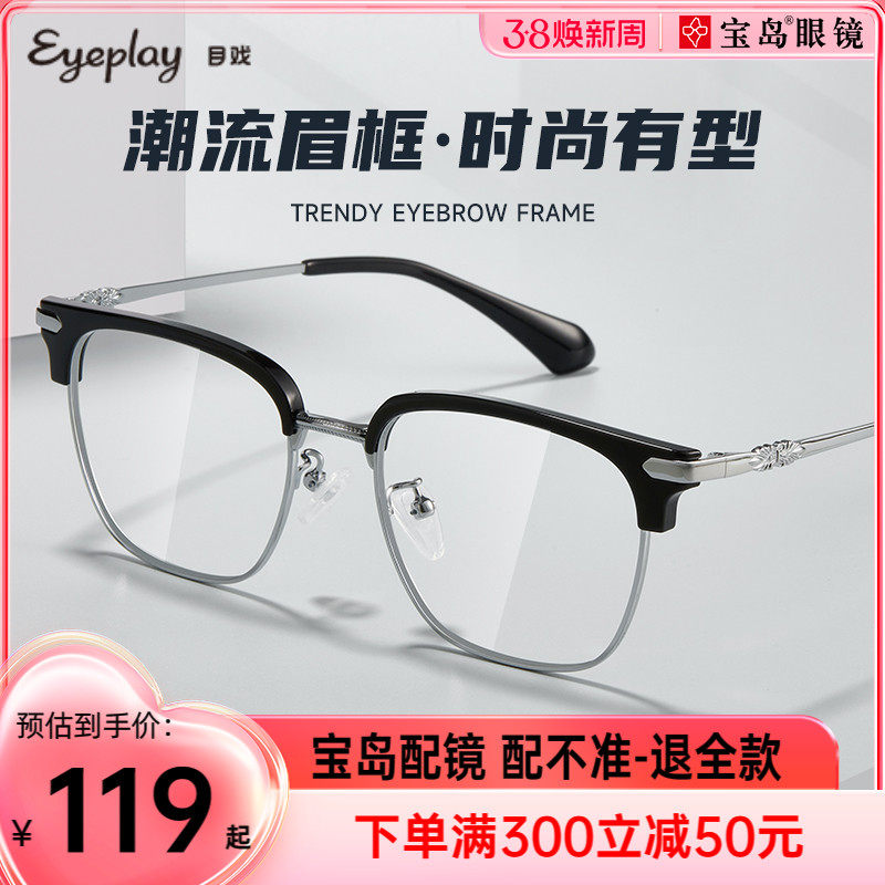 目戏半框近视眼镜架男款大框网上配镜可配度数散光防蓝光镜片宝岛
