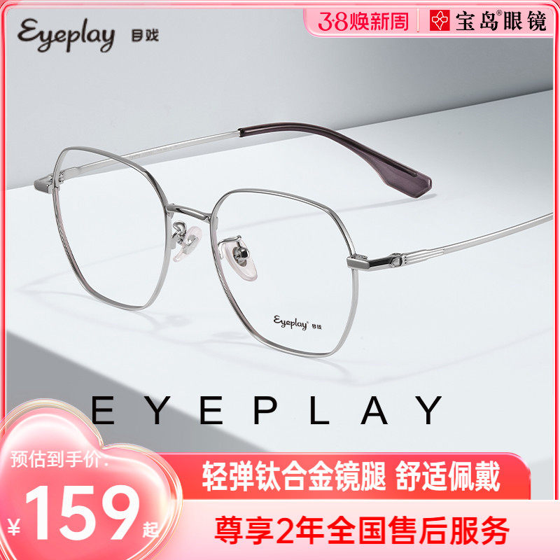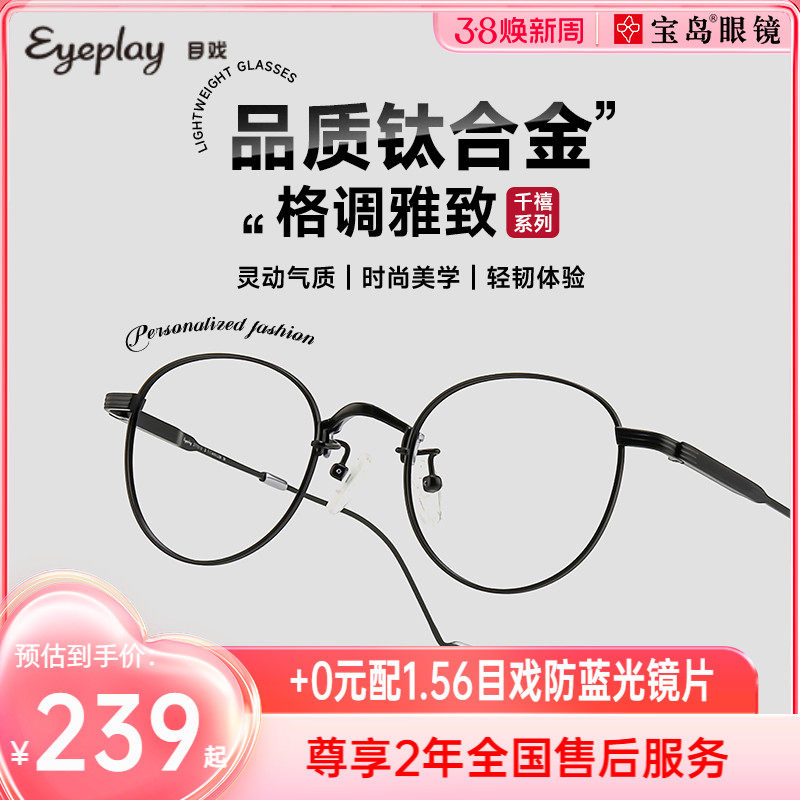目戏超轻近视眼镜架男士款钛合金镜腿可配度数防蓝光镜片宝岛1022