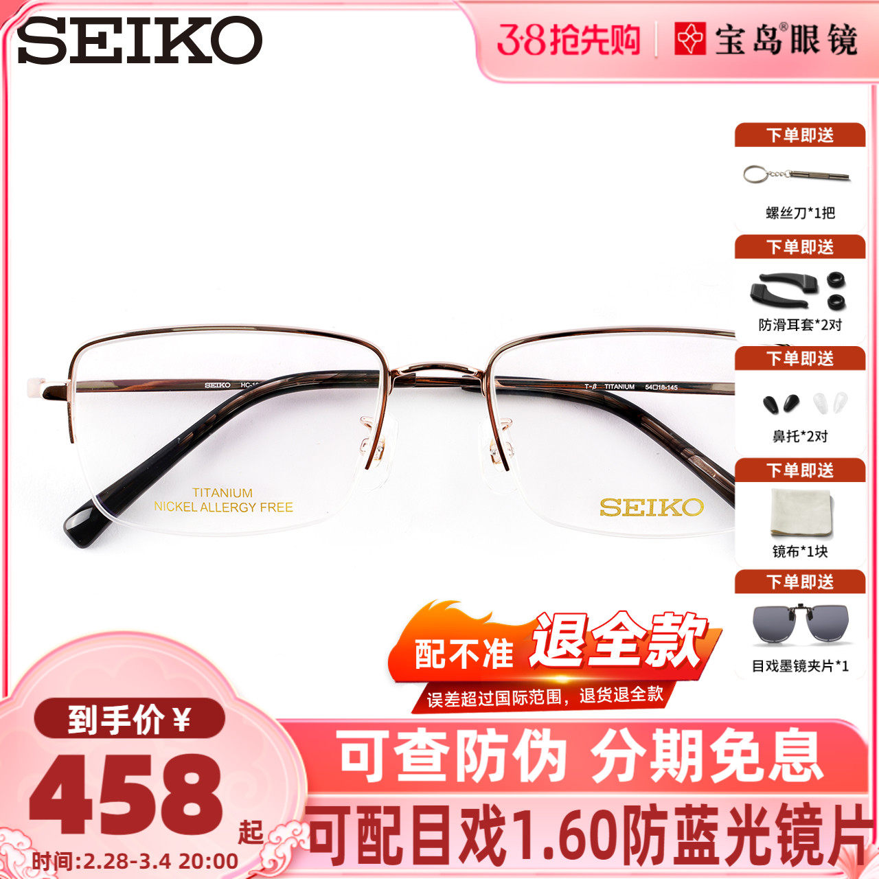 SEIKO精工眼镜框男士商务小框钛合金半框镜架可配近视镜片HC1038