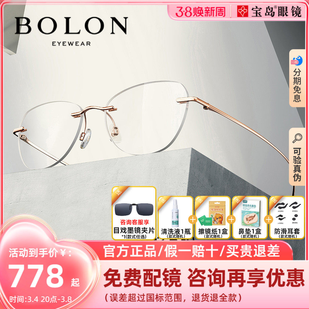 暴龙无框近视眼镜架蝶形钛合金镜框气质带度数镜片光学镜女BT1592