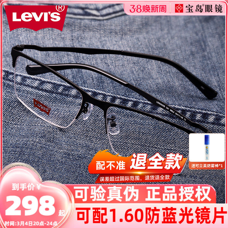 levis李维斯近视眼镜框可配镜片男黑框镜架商务潮流半框宝岛5252
