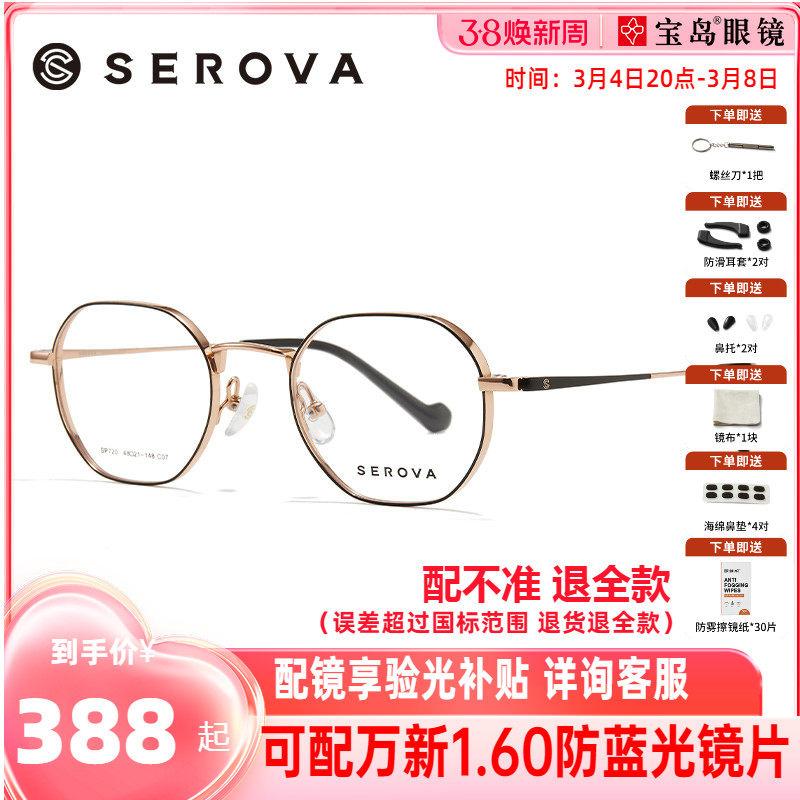 高度数系列 目戏高度近视眼镜女轻盈钛合金镜腿可配轻薄镜片4001