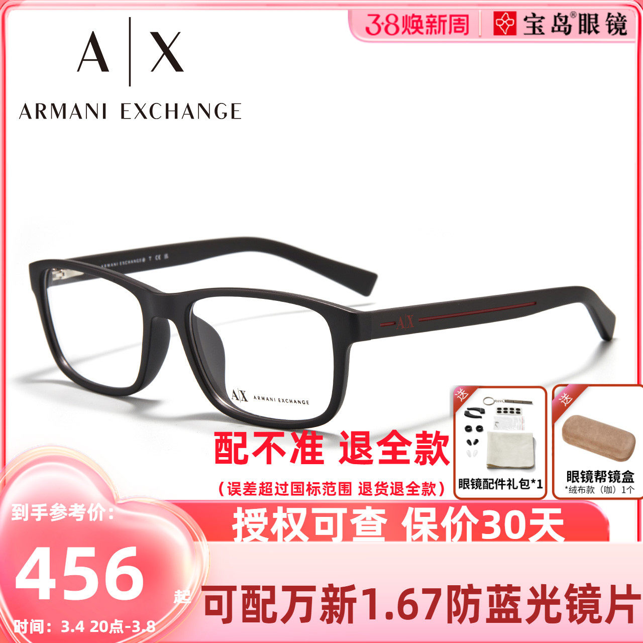 Armani阿玛尼眼镜架男士光学黑色方框可配近视镜片宝岛旗舰AX3021