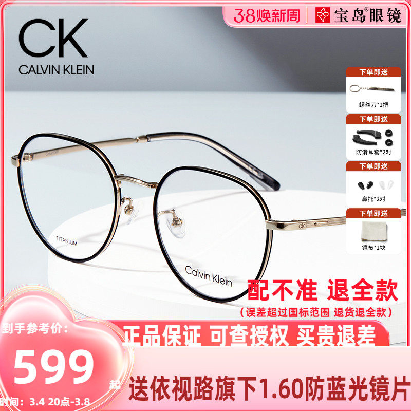 CK钛合金眼镜架男女圆形复古眼镜框可配近视度数防蓝光镜片20146