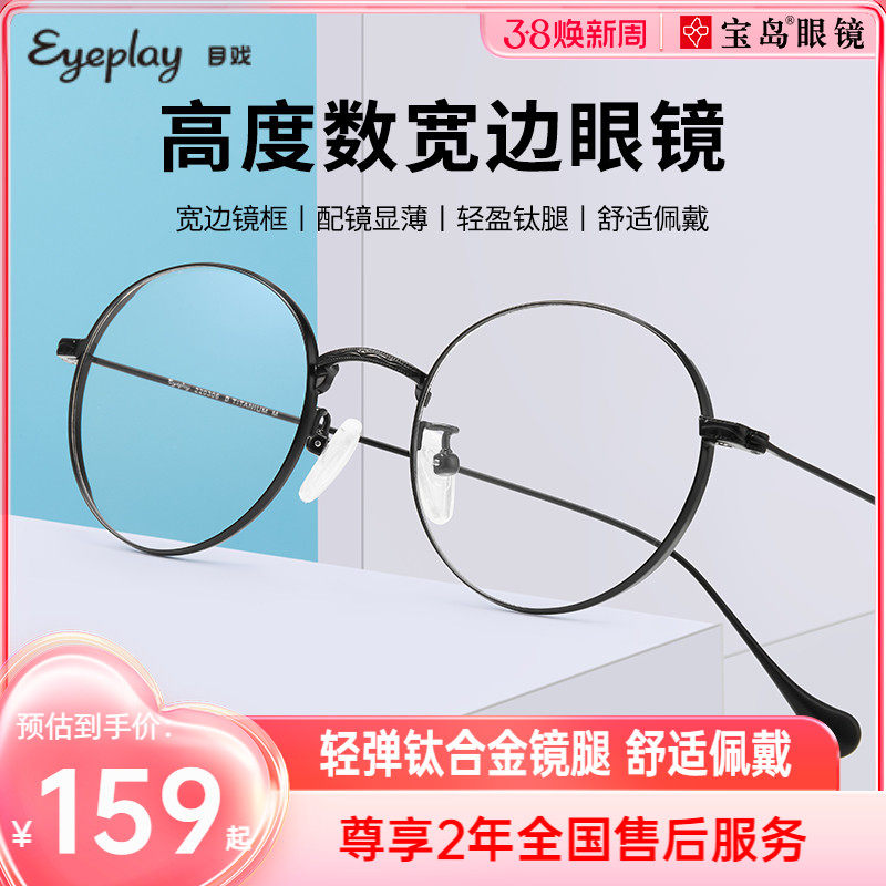目戏高度数近视眼镜近视眼镜男女款轻盈小圆框可配1000°镜片1045