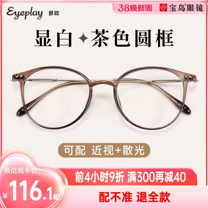 目戏冷茶色眼镜近视女可配防蓝光镜片度数高级感轻眼镜框镜架圆框