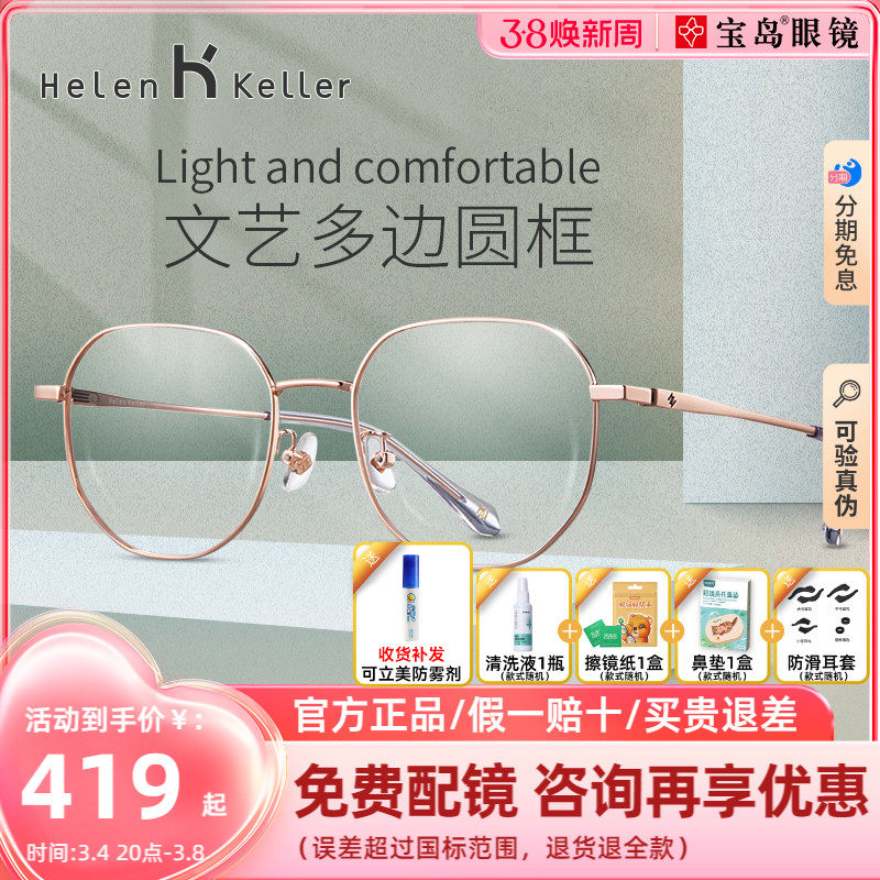 海伦凯勒眼镜框女可配近视镜片有度数女防蓝光眼镜架男宝岛H23041