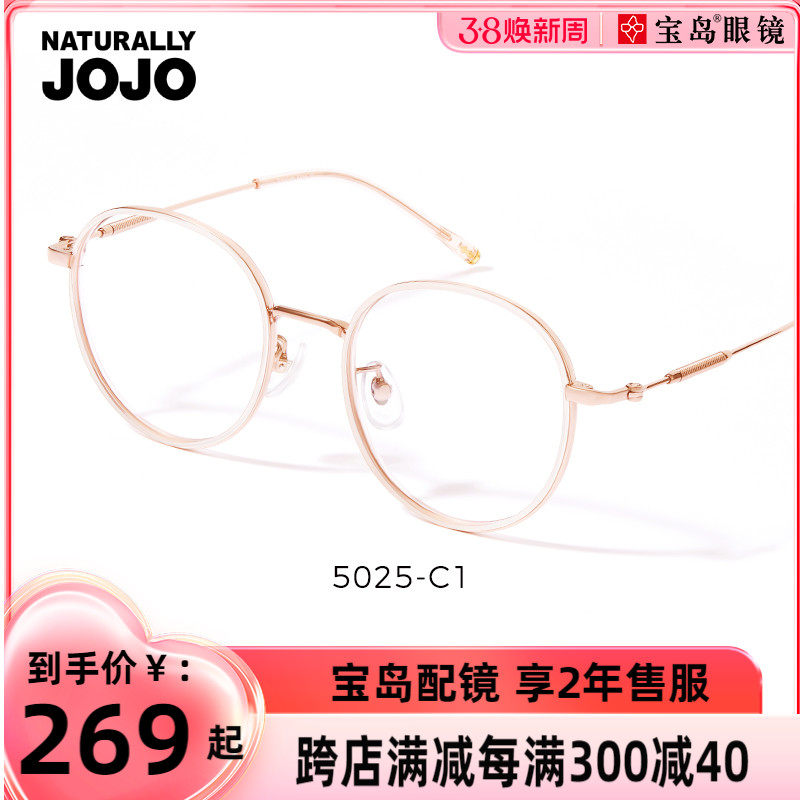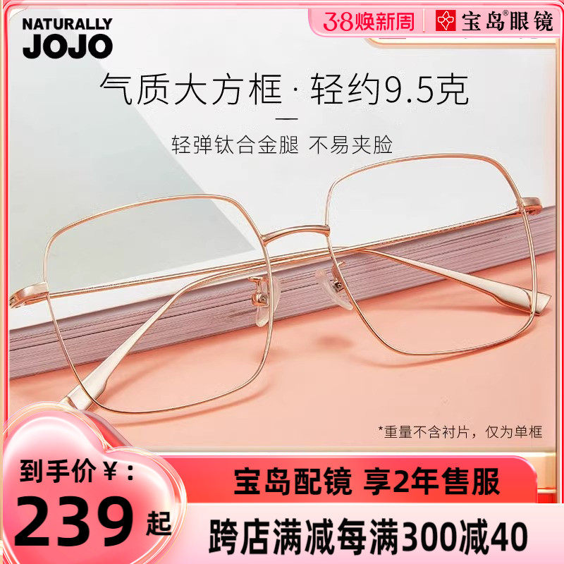 JOJO近视眼镜女可配度数玫瑰金2023新款镜框宝岛防蓝光镜片10017A