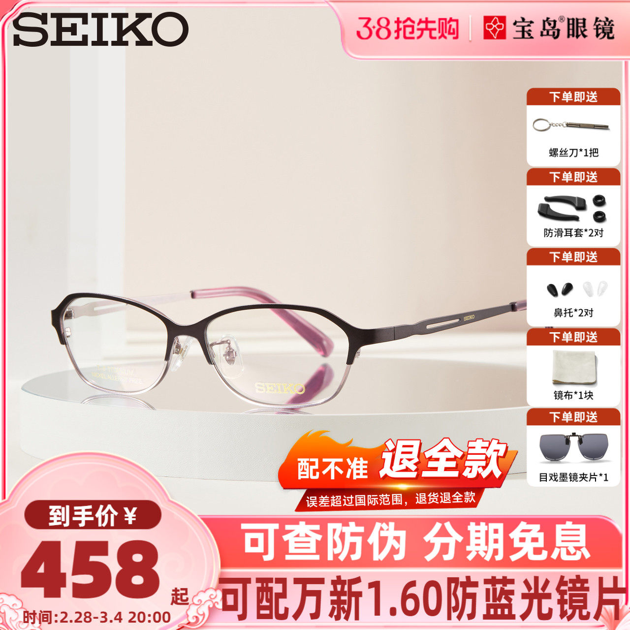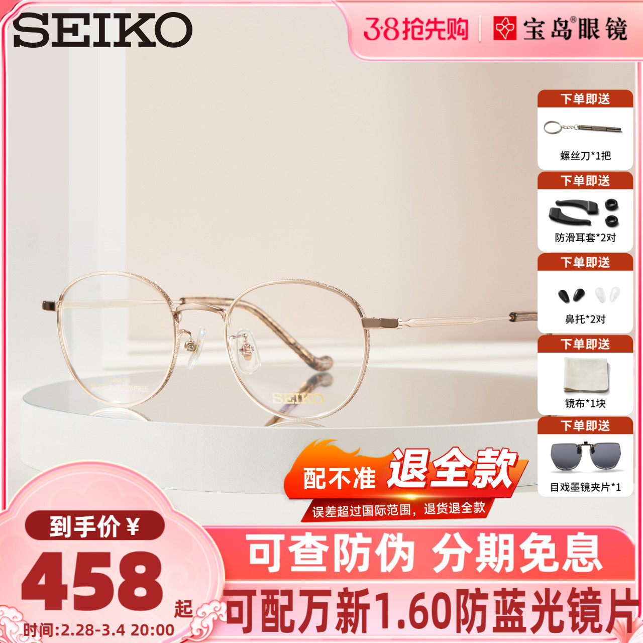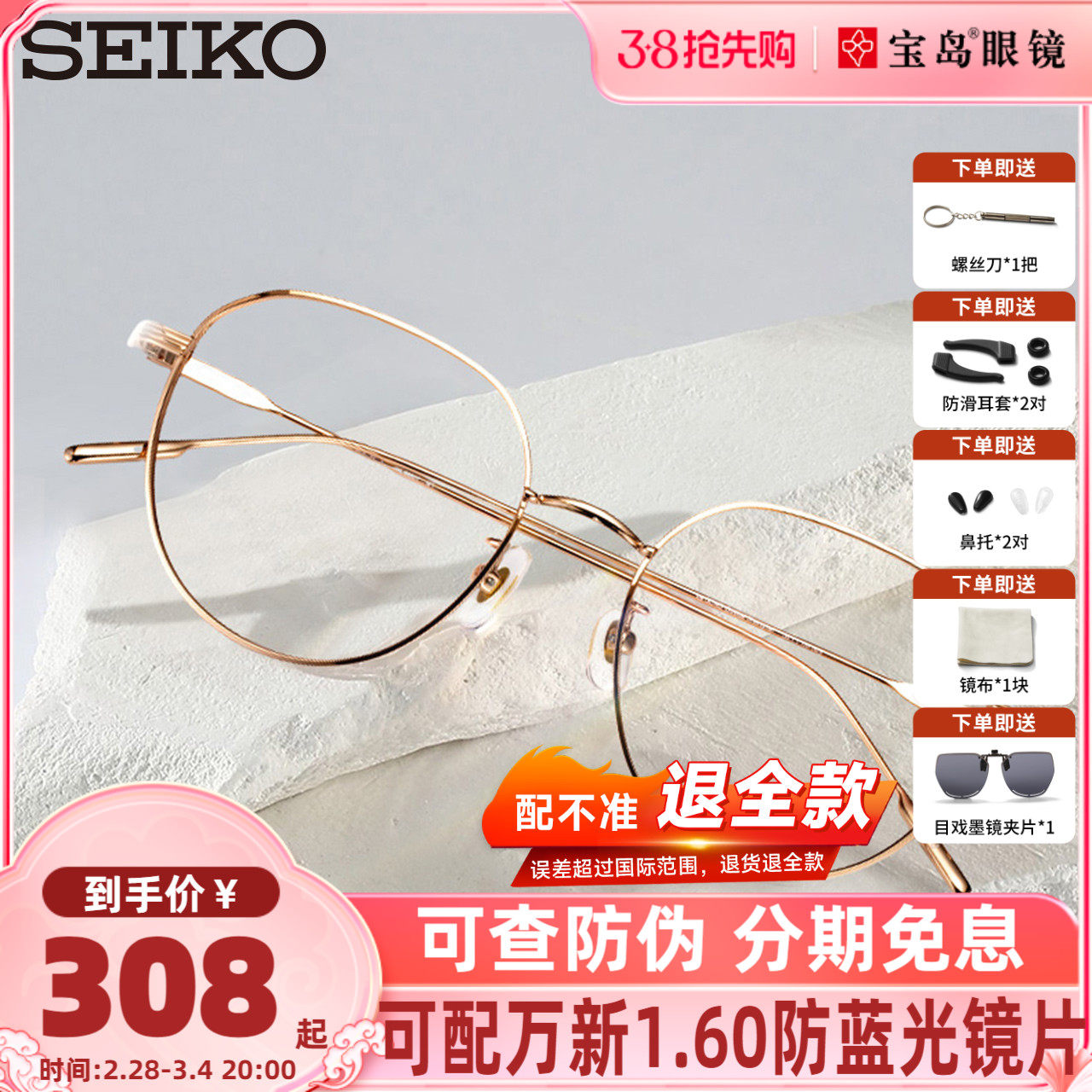 SEIKO精工眼镜框男女复古圆框眼镜架光学框可配近视镜片宝岛3021