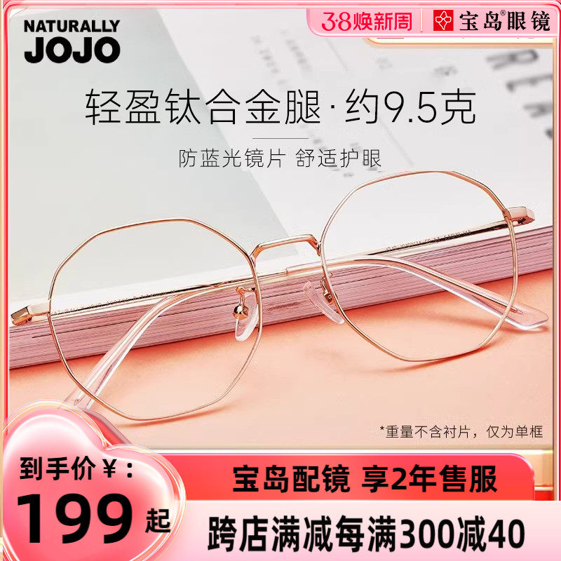 JOJO韩系文艺眼镜近视女款可配度数钛合金显脸小防蓝光镜片10064